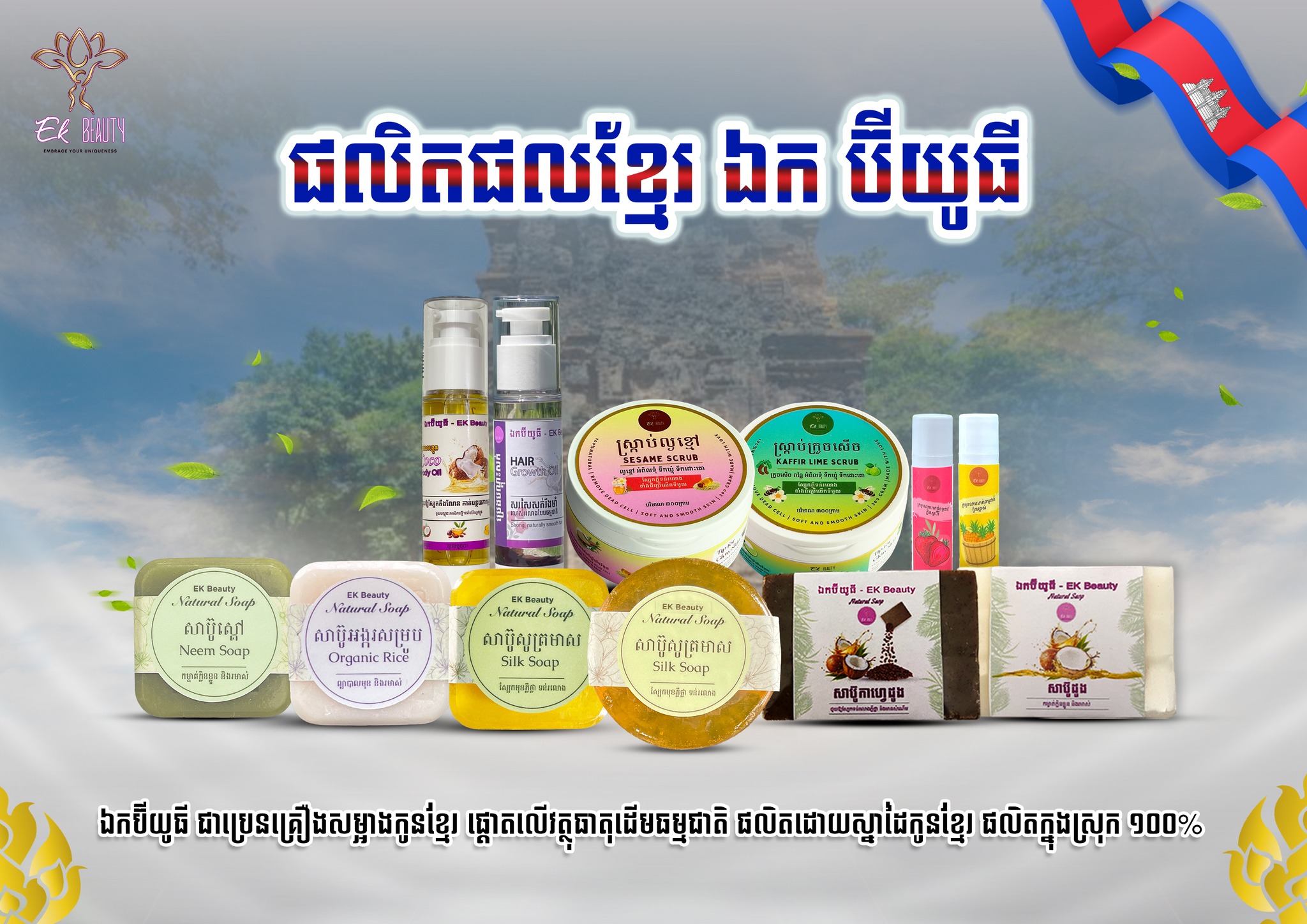 ចុងក្រោយគេ ឯក ប៊ីយូធី – Ek Beauty ជាម៉ាកយីហោគ្រឿងសម្អាងកូនខ្មែរ ដែលបានប្រើប្រាស់នូវវត្ថុធាតុដើមធម្មជាតិជាច្រើនដូចជាដូង ស្តៅមកផលិតចេញជាសាប៊ូ និងប្រេងជាដើម។ រួមទាំងច្នៃក្រូចសើច ល្ងខ្មៅផលិតចេញជាស្រ្កាប់ទៀតផង។ ក្រៅពីនេះ ក៏នៅតែមានផលិតផលជាច្រើនផ្សេងទៀត ដែលសុទ្ធសឹងតែផលិតក្នុងស្រុក និងប្រើប្រាស់វត្ថុធាតុដើមក្នុងស្រុក។
